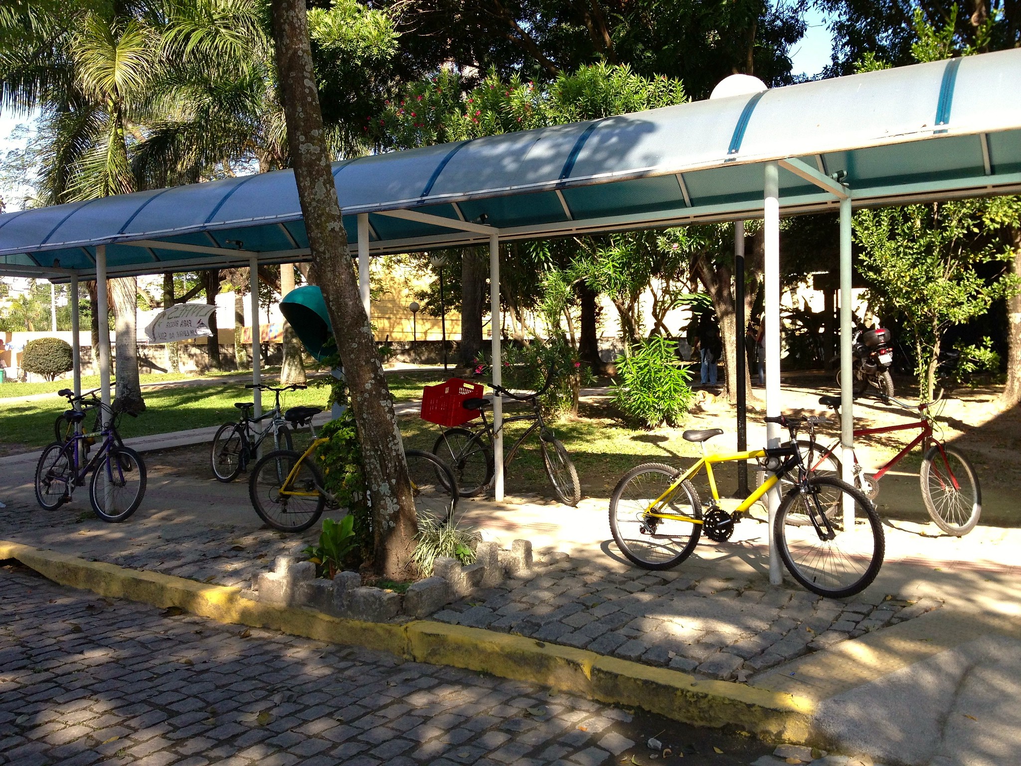Julguei oportuno divulgar este ensaio fotográfico neste dia mundial sem carro (22.09.13). Em maio deste ano registrei a ausência de bicicletários no Campus Gragoatá da UFF. Na falta de locais adequados para o estacionamento de bicicletas, nós ciclistas precisamos utilizar da criatividade e improvisar um porto seguro para as nossas magrinhas. O crescente número de usuários de bicicletas nos campi universitários – uma boa notícia! – aumenta a dificuldade de se encontrar um poste, um cano de água ou uma árvore que sirvam de amparo.